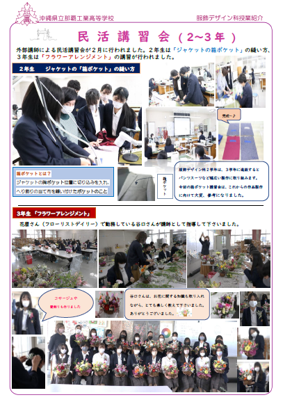 「ジャケットの箱ポケット」の縫い方、「フラワーアレンジメント」の講習を受けました。